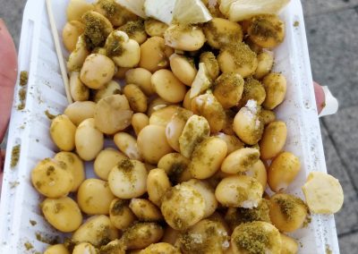 - Foul (Bób) – To wyjątkowe danie śniadaniowe / lunchowe przywieźli w te rejony Egipcjanie w latach 30’ XIX wieku. Oczywiście Libańczycy nieco je zmodyfikowali dodając oliwę z oliwek.. Bób jest porządnie zagotowany (najczęściej jest kupowany w puszkach, by uniknąć gotowania) i “podziabdziany” widelcem (to taka pół-pasta), a następnie doprawiony czosnkiem i sokiem z cytryny. Całość jest polana wspomnianą oliwą, a jako dodatek na osobnym talerzu podaje się świeże warzywa. Foul można jeść zanurzając w nim świeży, ciepły chleb lub używać cebuli jako… łyżeczki!